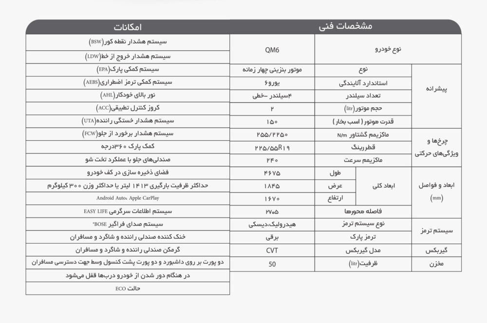 مشخصات فنی رنو سامسونگ QM6